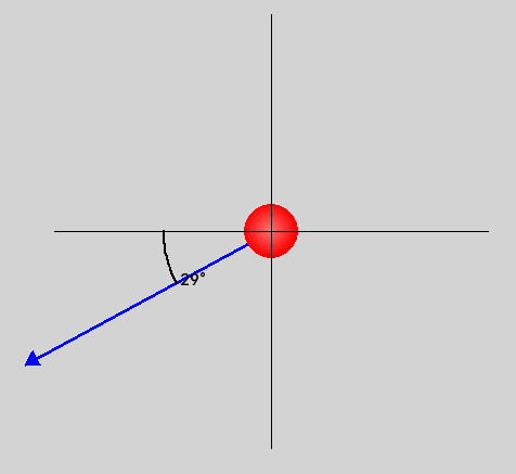 点击 添加速度 后,屏幕会出现基准坐标系以确定方向,小球会在再次点击鼠标后得到一个向箭头方向的初速度,初速度大小取决于指向线的长度