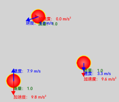 在该模式下,物体之间将彼此间存在引力,如果控制好向心加速度,我们甚至可以模拟太阳-地月系运动!