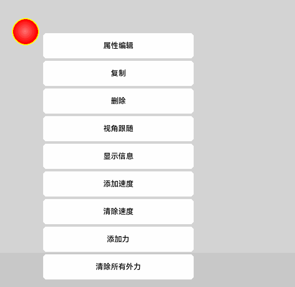 修改其中的属性,可以在之后放置弹力球时,默认按照最新修改的属性来生成