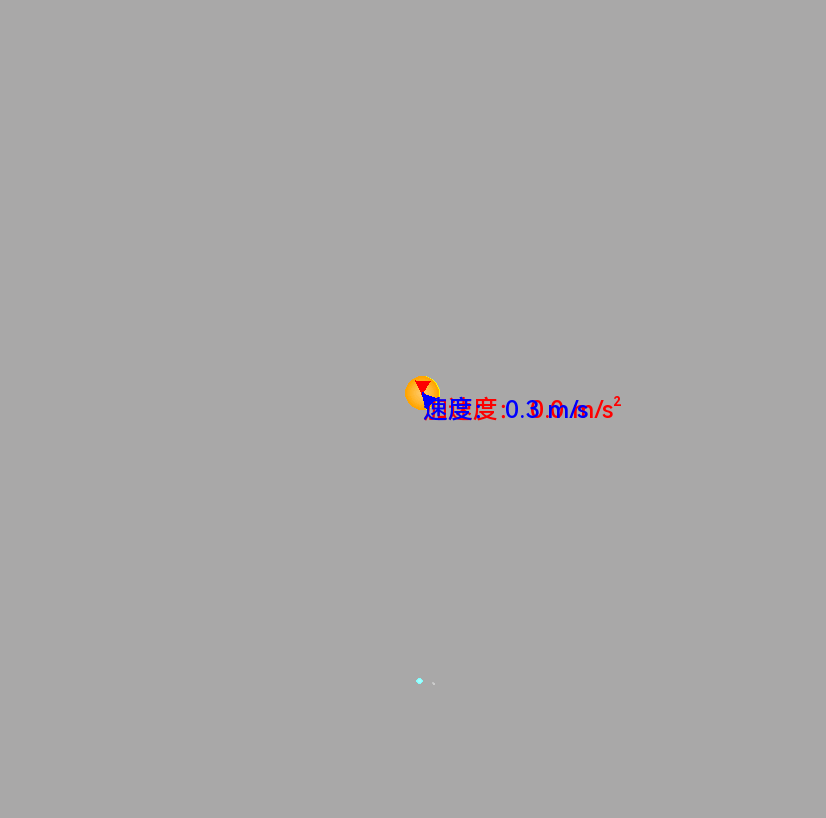 点击 添加速度 后,屏幕会出现基准坐标系以确定方向,小球会在再次点击鼠标后得到一个向箭头方向的初速度,初速度大小取决于指向线的长度